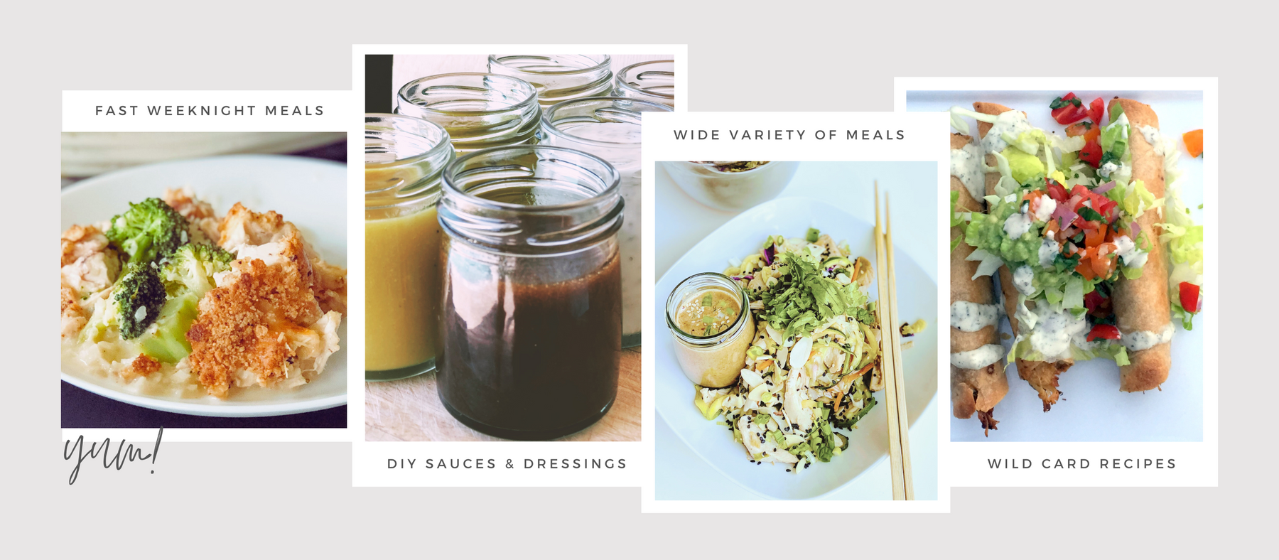 With my modular meal prep system, you won’t be making full meals, but simple components you will combine throughout the week using the recipes I provide for really fast weeknight dinners.